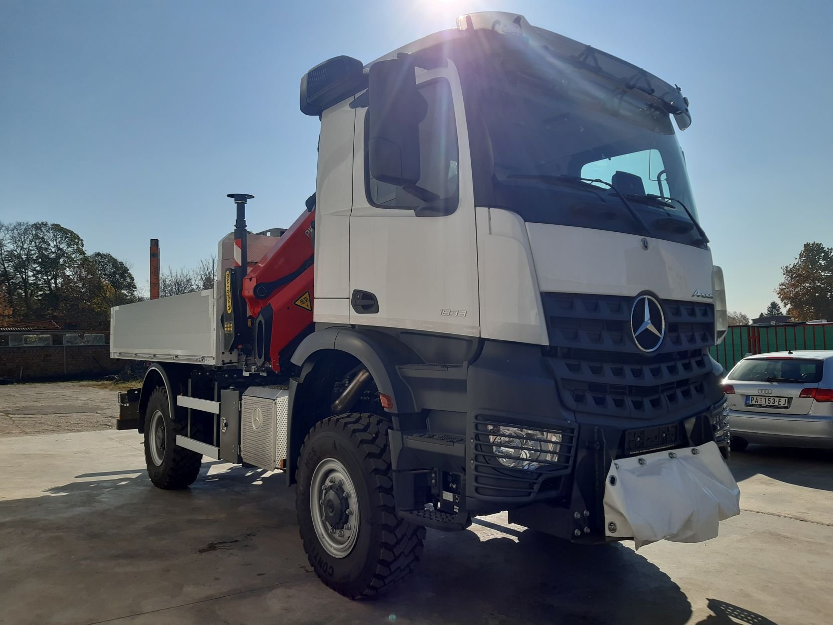 Isporučeno je vozilo sa Palfinger dizalicom PK 17.001 SLD 1 koja ima horizontalni dohvat od 14,7 metara i fiksnim sandukom TS-3.5 dužine 3500 mm. Uz dizalicu isporučena je i Ferrari radna korpa za rad na visini, kao i prednje vitlo. Kompletna nadgradnja montirana je na Mercedes Benz Arocs 1833 AK 4×4, što vozilu pruža odlične performanse i pouzdanost u zahtevnim radnim uslovima.