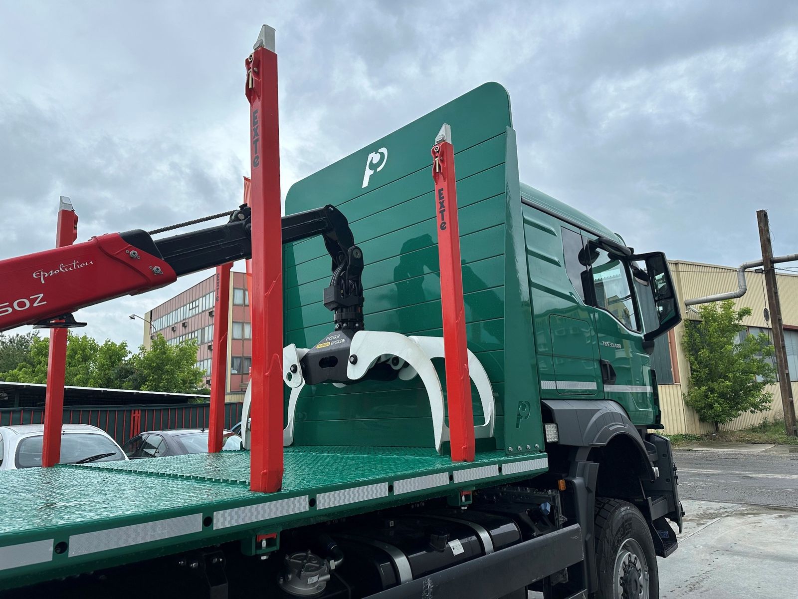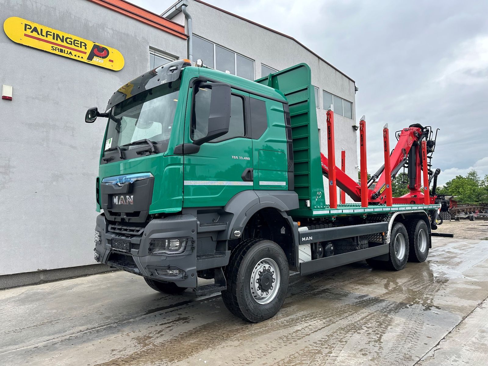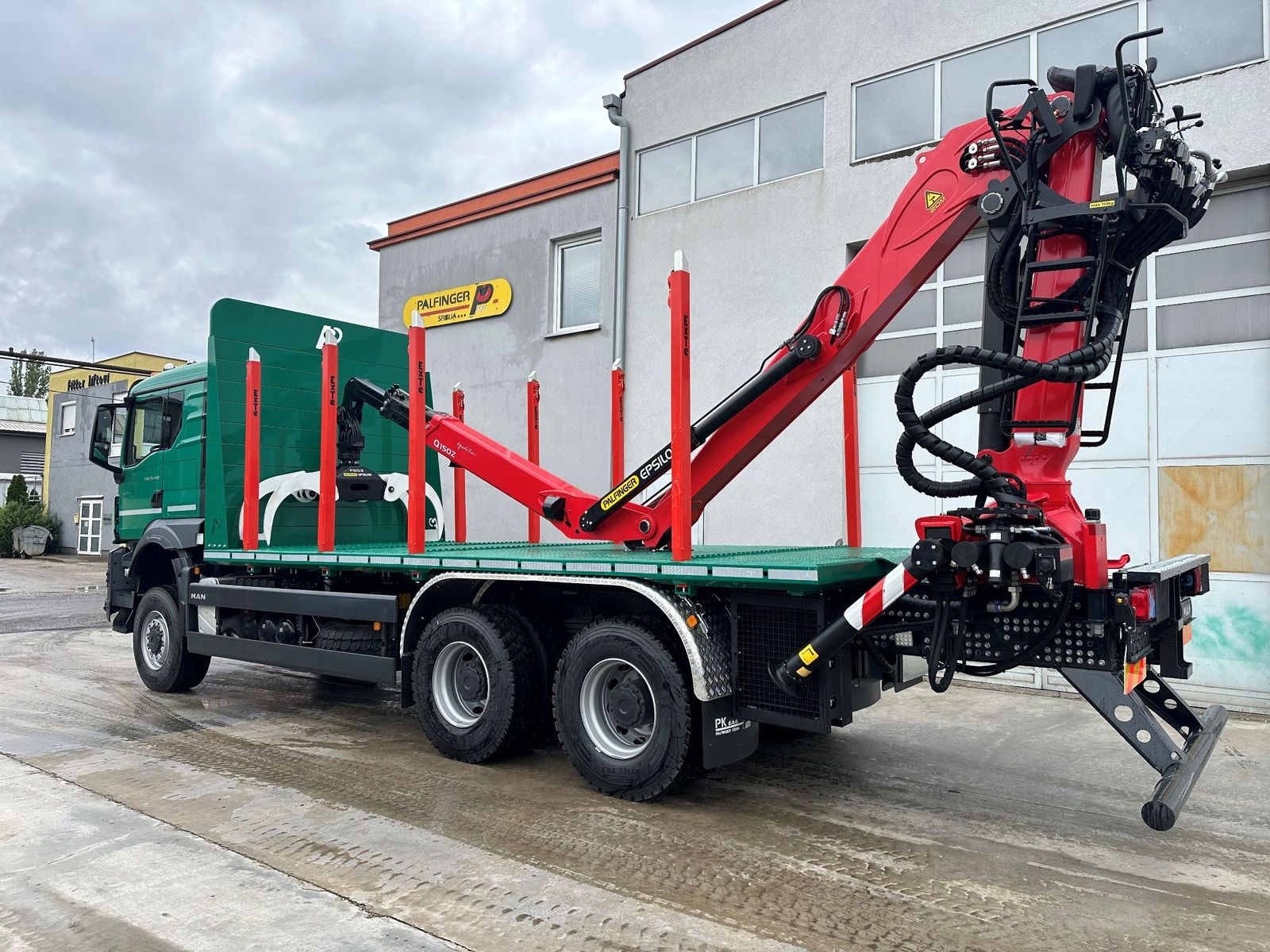 Na vozilo MAN TGS 33.480 6×6 BB CH isporučena je šumarska nadgradnja sa Palfinger Epsilon dizalicom Q150Z96 i šumarskom platformom sa punim podom dužine 6.200 mm, opremljenom sa četiri para Exte štica E144. Ova kombinacija obezbeđuje pouzdan i efikasan rad u najzahtevnijim uslovima šumskog transporta.
