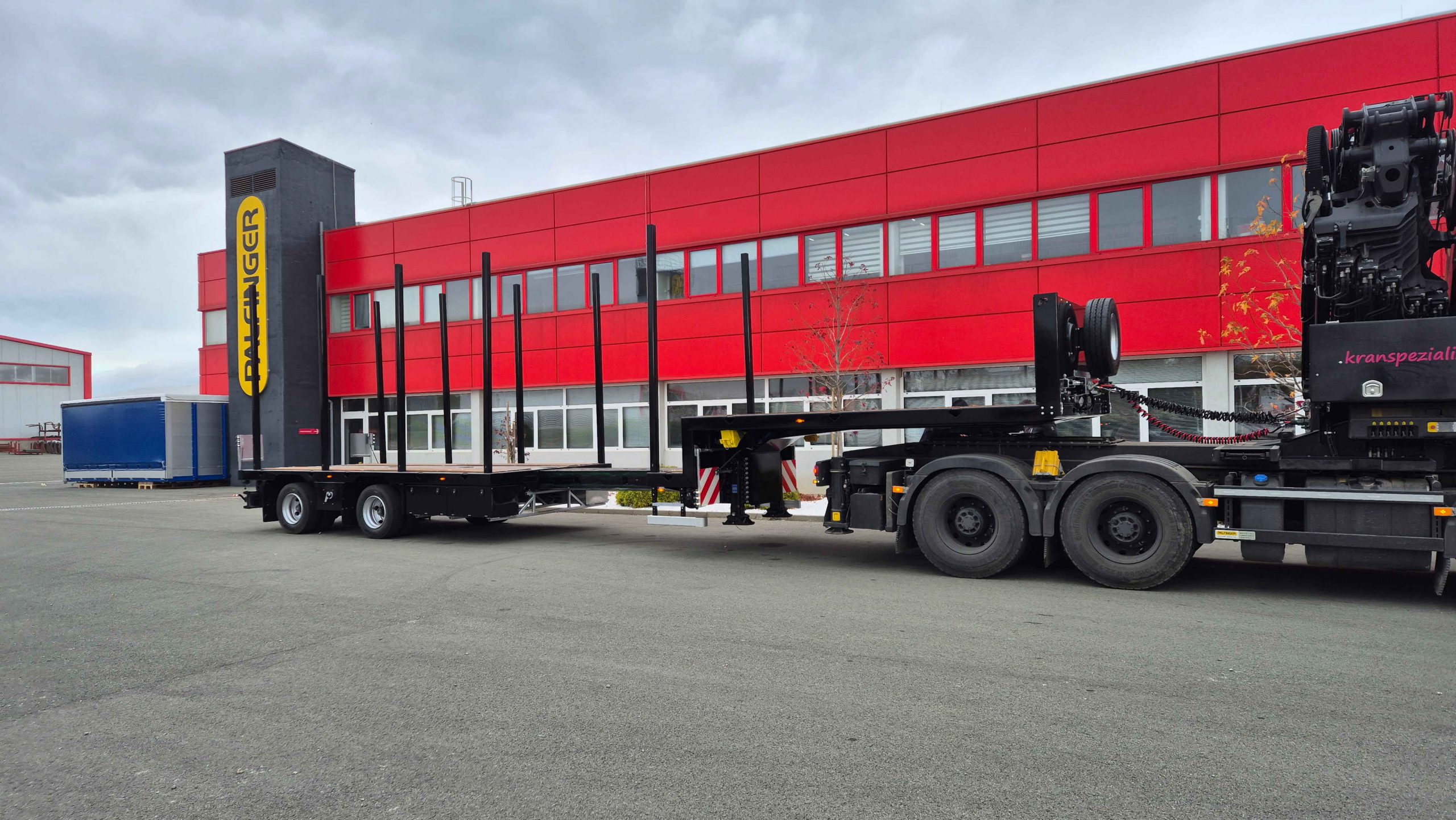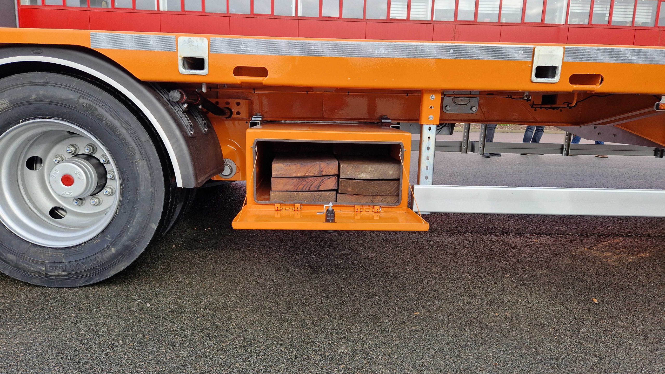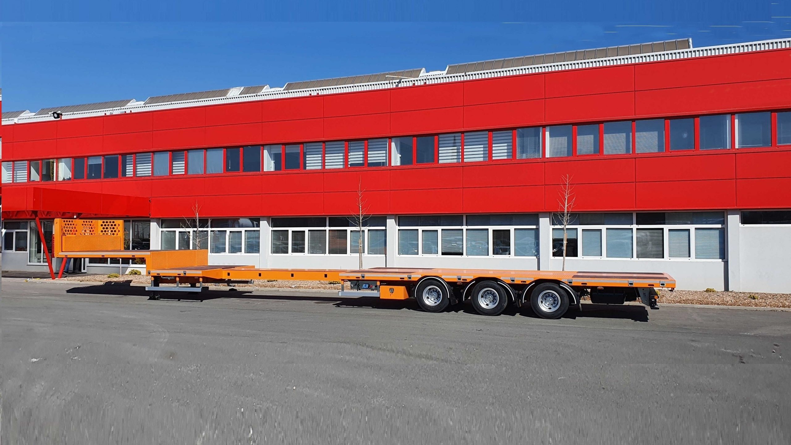The semi-trailer has a gross weight of 48 tons and a loading area 13,350 mm in length, which can be telescopically extended by an additional 4,000 mm, bringing the total length to 17,350 mm.