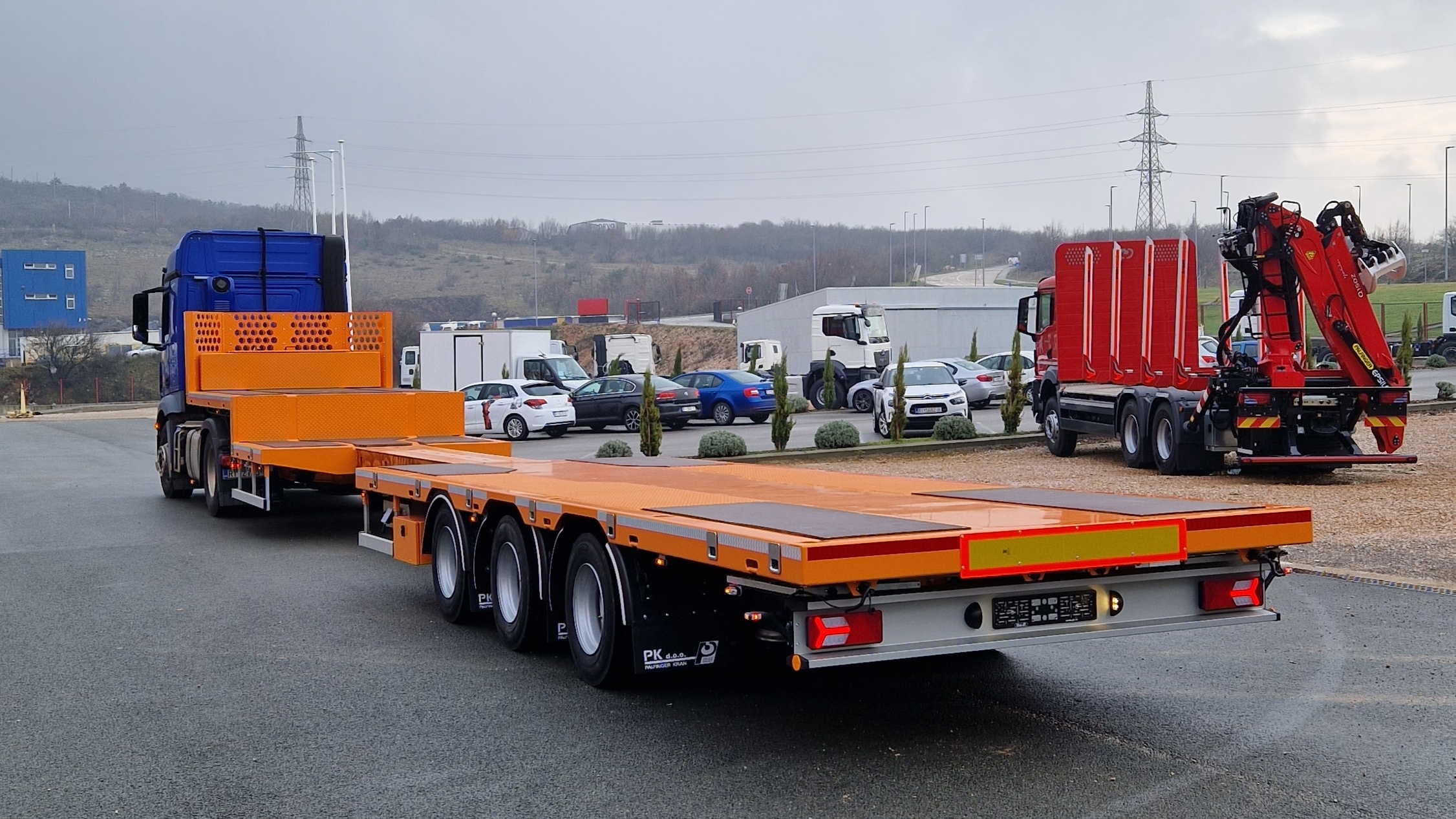 The PPRS36 model is designed for transporting construction machinery, pipes, and structural elements, with a maximum gross weight of 36 tons.