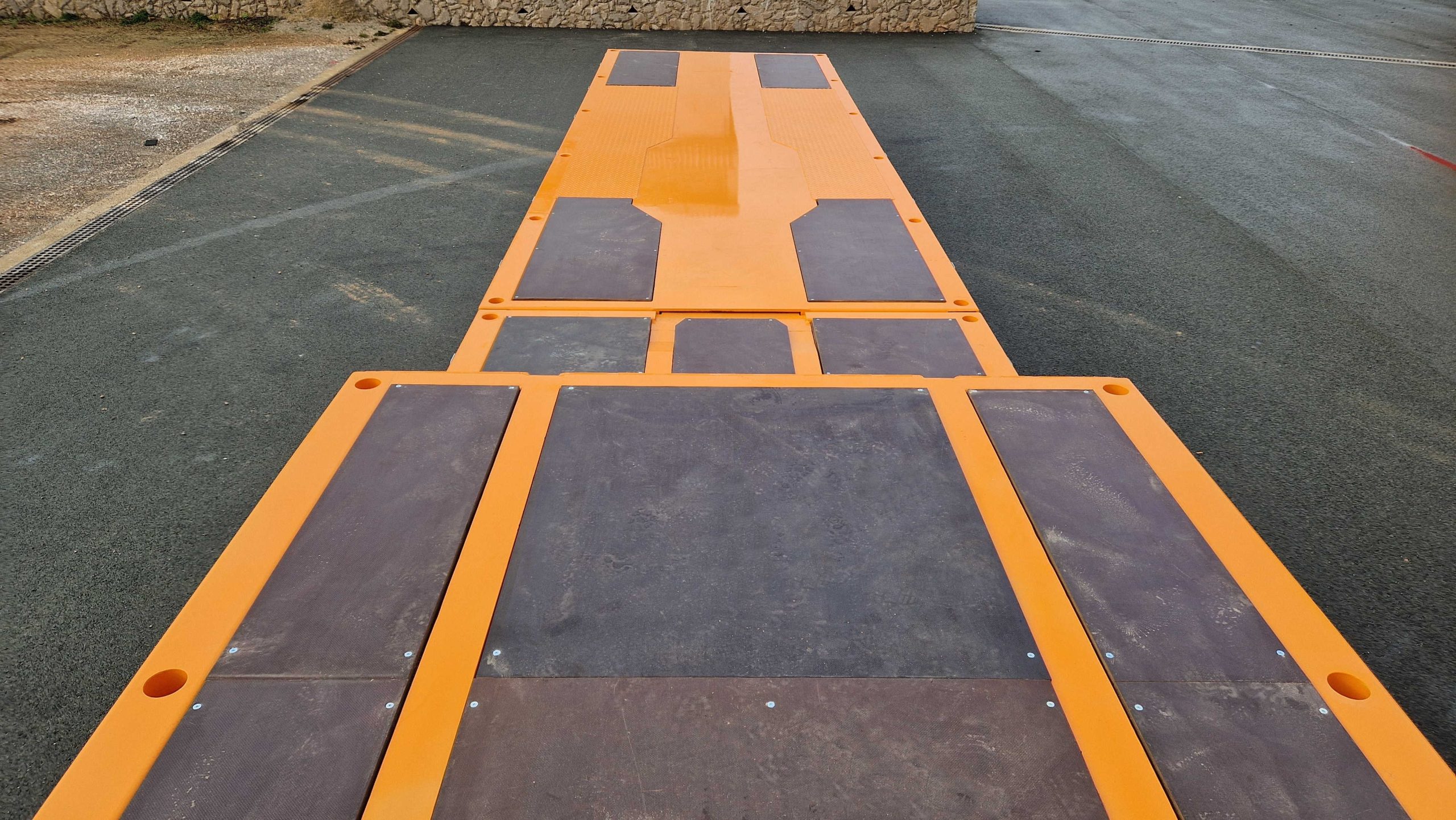 Along the outer edge of the platform, there are pipe holders that serve as stops during transport.