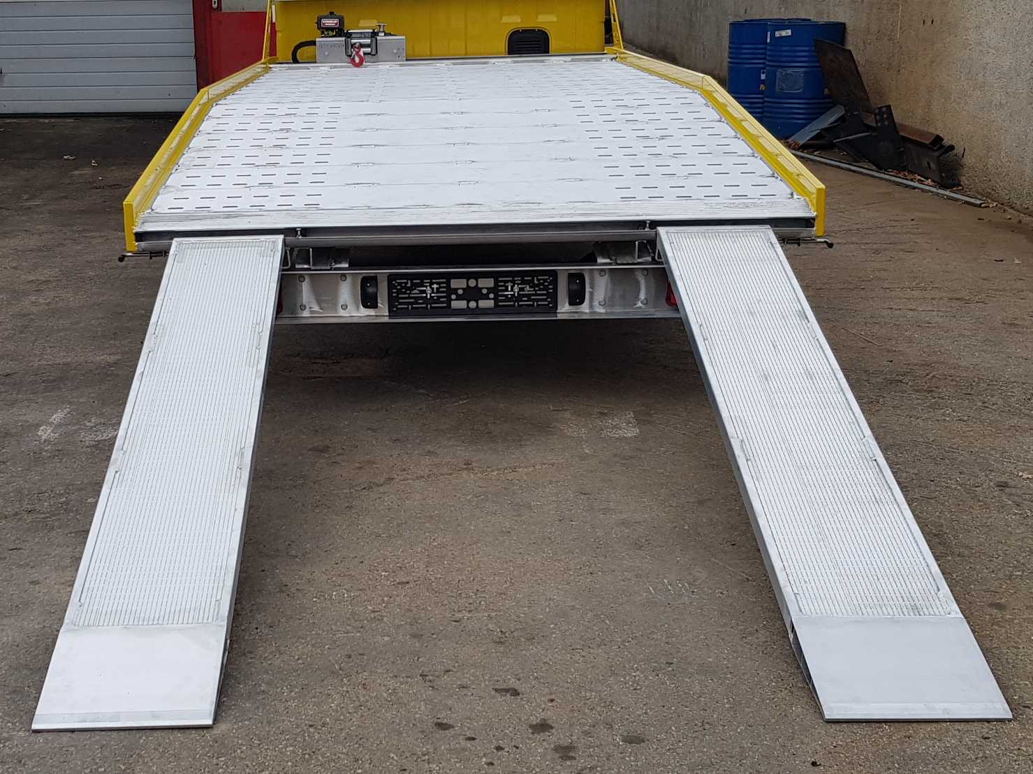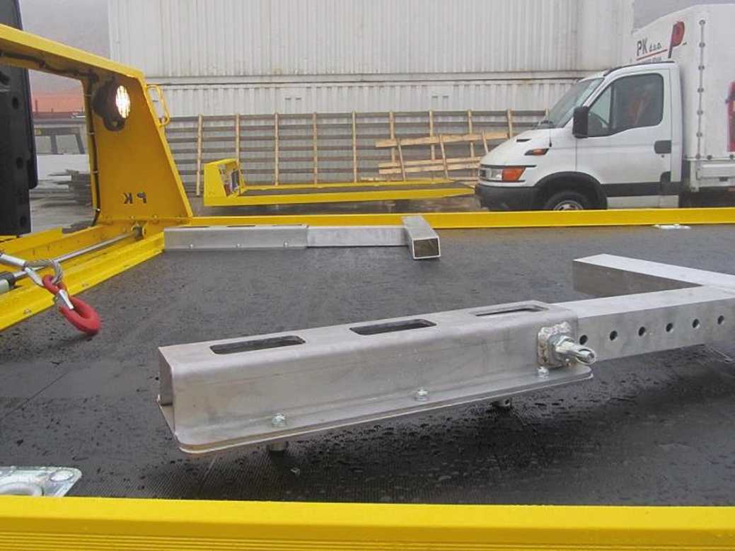 A reliable and practical solution for transporting smaller vehicles and equipment. The fixed platform is made of aluminum alloy, providing low weight and high strength. It is designed for category B vehicles, and thanks to its simple construction and high functionality, it is ideal for towing services, workshops, and transporters seeking a lightweight and safe solution.