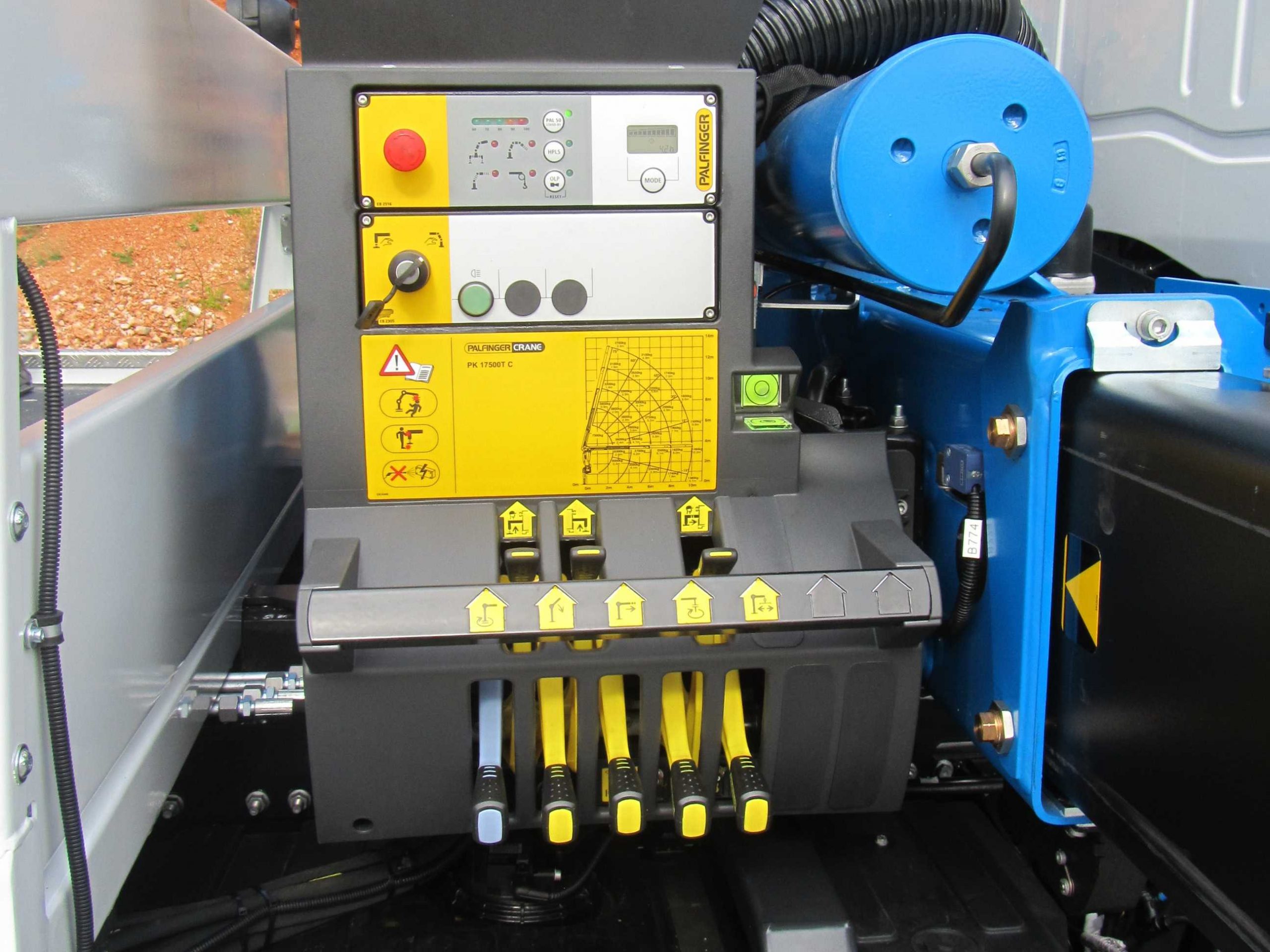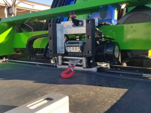 - radio upravljanje sa funkcijama: namotavanje/odmotavanje vitla, pomeranje vitla levo/desno, podizanje i spuštanje platforme, prekidač start–stop