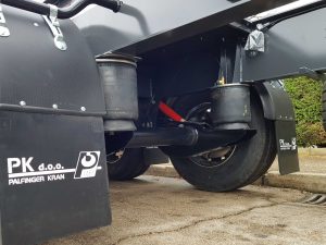 - Osovine: 3 × 9.000 kg (1 podizna, 2 i 3 fiksne)